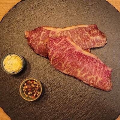 Das Rumpsteak wird aus dem Roastbeef geschnitten und ist somit von einem deutlichen Fettdeckel bedeckt.